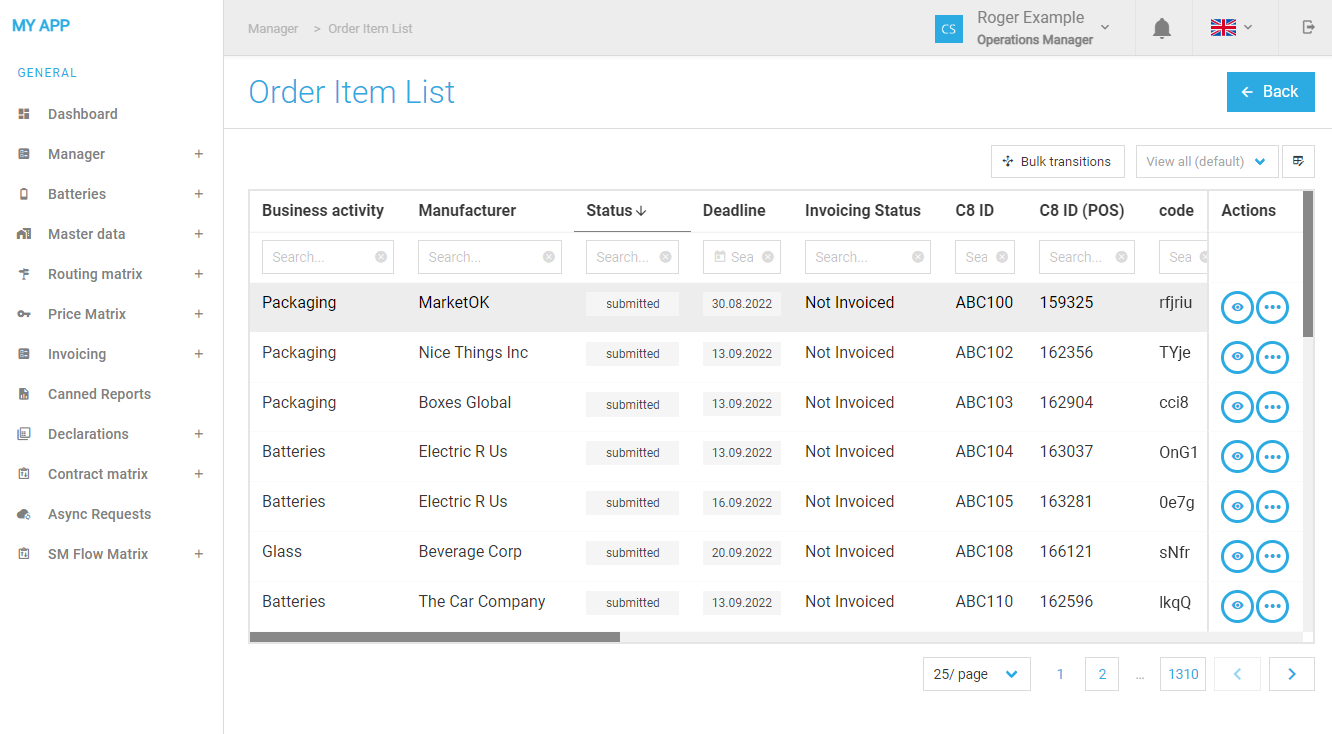 Return, take-back, or circular material flows require efficient management of operational chains, accurate tracking of end-to-end material flows, and transparency of all related transactions across all material types and regions.